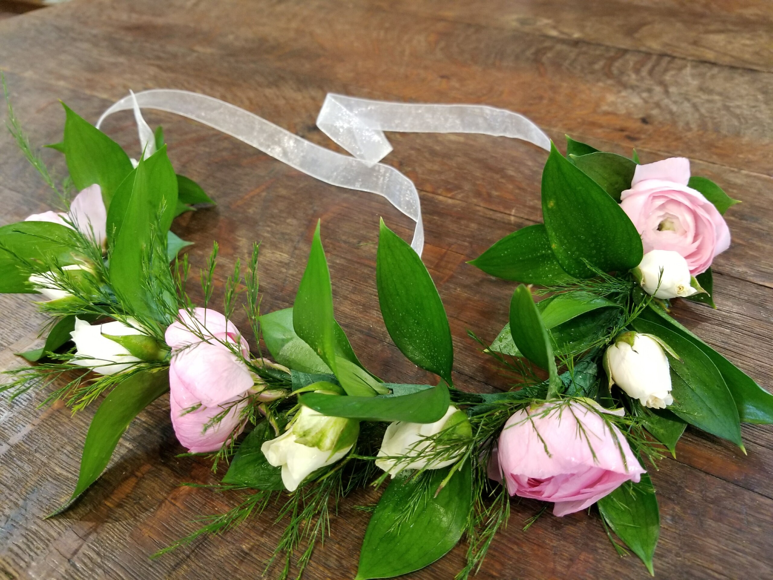 Home / First Communion / Pink Ranunculus & White Spray Rose Crown Pink Ranunculus & White Spray Rose Crown$95.00 Pink ranunculus and white spray roses with greenery and ribbon tie Pink Ranunculus & White Spray Rose Crown quantity add to cart Add to Wishlist Category: First Communion Product ID: 4381 Description Description Pink ranunculus and white spray roses with greenery and ribbon tie Related products quick viewadd to cart Baby’s Breath Crown $75.00 add to cart quick viewadd to cart Petite Rose Boutonniere $25.00 – $34.00Price range: $25.00 through $34.00 add to cart This product has multiple variants. The options may be chosen on the product page quick viewadd to cart White Spray Rose with Blush Wax Crown $85.00 add to cart